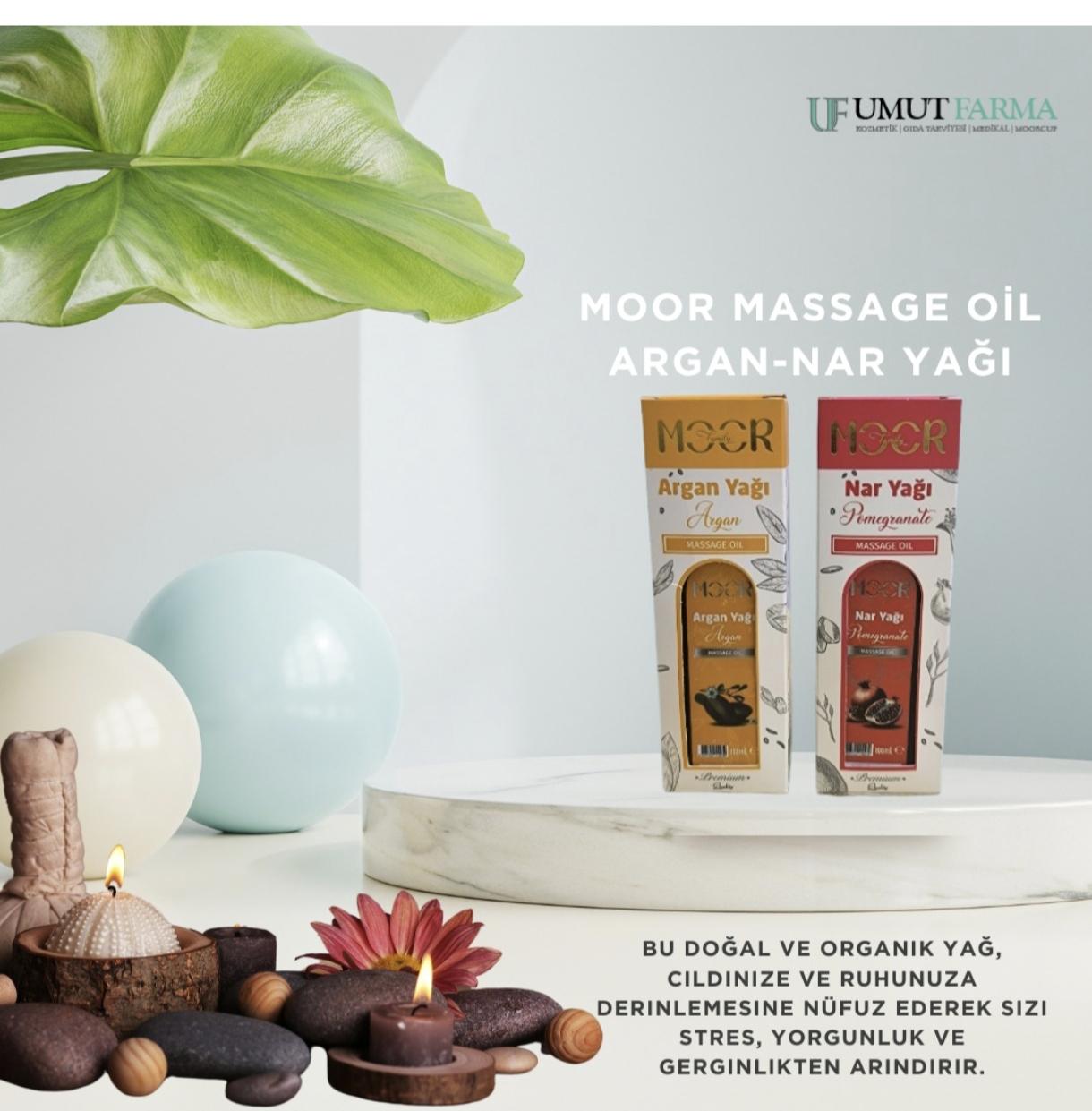 MOOR MASSAGE OİL Argan-Nar Yağı, keyifli ve sağlık dolu bir masaj deneyimi sunmak için hazır. Siz de bu doğal ve etkili ürünü deneyerek, cildinizin ihtiyacı olan besleyici ve canlandırıcı bakımı sağlayabilirsiniz.