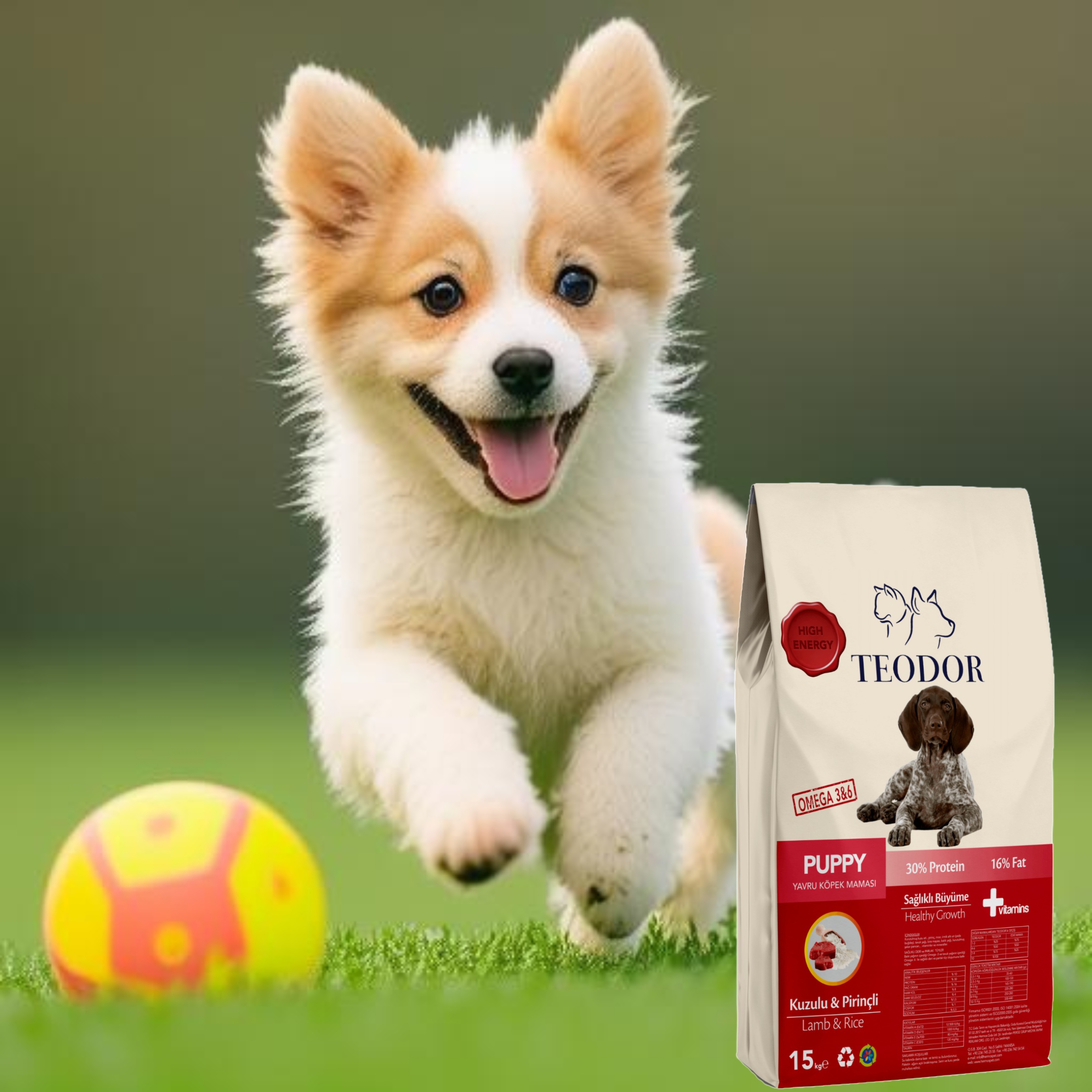 Teodor Puppy Yüksek Enerjili Kuzulu ve Pirinçli %30 Protein Yavru Köpek Maması 15KG, aktif ve enerjik yavru köpeklerinizin beslenmesi için özenle oluşturulmuş bir mama çeşididir. İçeriğindeki yüksek kaliteli protein kaynakları ve doğal malzemeler sayesinde sağlıklı bir büyüme ve gelişim süreci sağlar.